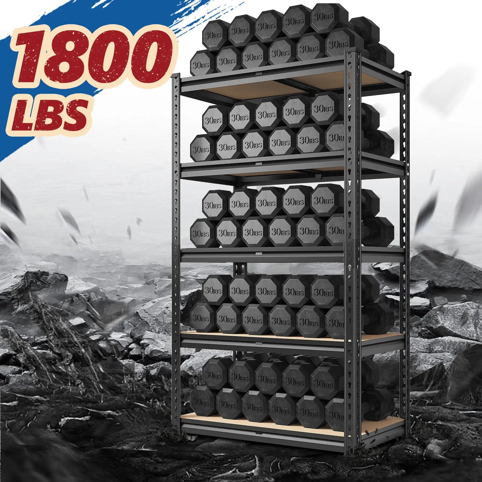 - 1800 lbs total capacity across five shelves (up to 300 lbs per shelf) built on rolled-edge, thickened metal columns for rugged, reliable storage.
