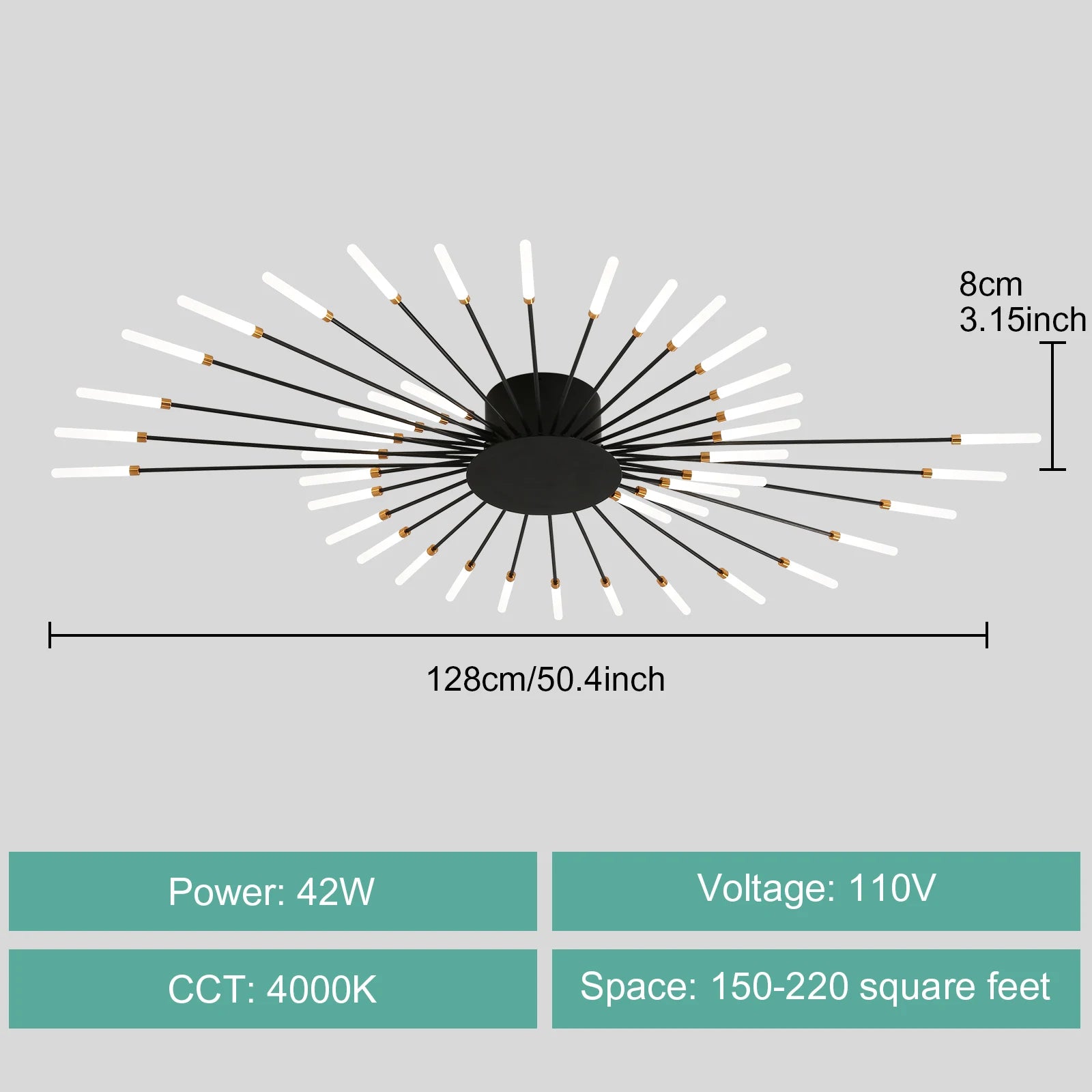 Elevate your living space with a contemporary LED ceiling light that lets you enjoy a fireworks-inspired silhouette, a polished gold finish, and bright, energy-efficient illumination for your living room and bedroom.