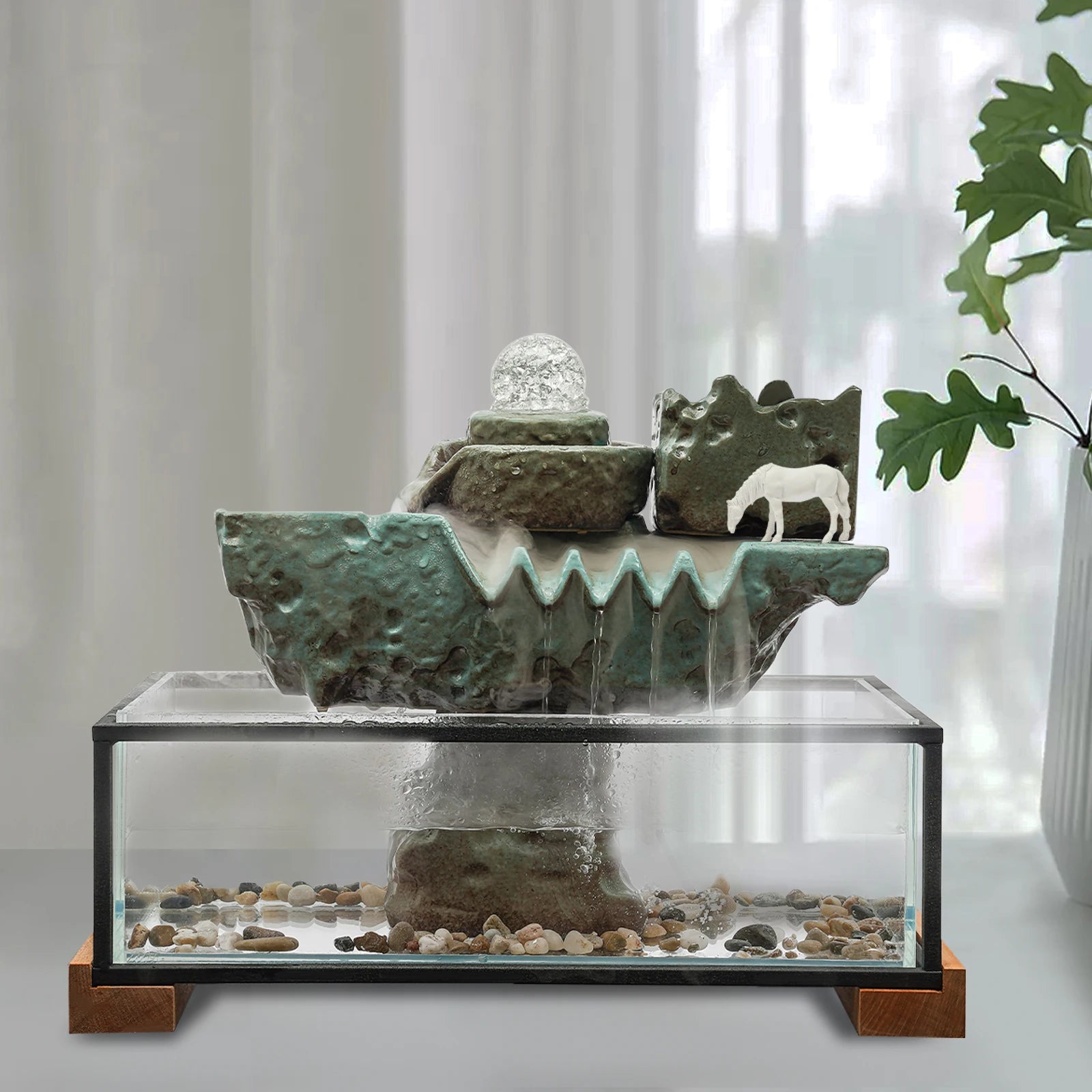 Create a tranquil focal point on your desk or shelf with the Bymaocar Zen Tabletop Water Fountain, where mist, light, and artistry come alive.